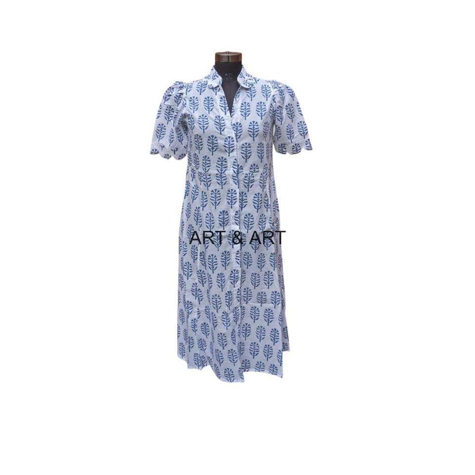 เดรสคลุมเข่าระบายอากาศระบายอากาศคอวีแขนยาวของผู้หญิงผ้าฝ้ายพิมพ์ลายดอกไม้สไตล์อินเดีย