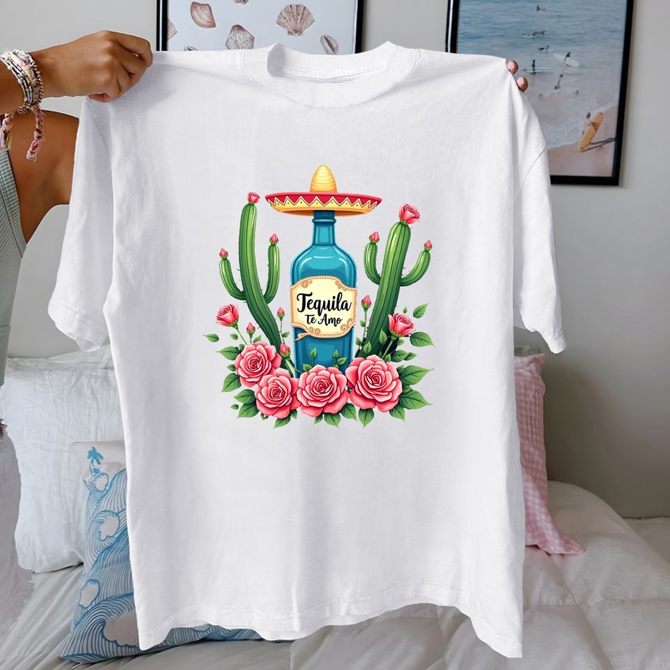 Casual Women's Tshirt with Sombrero Tequila Bottle Print 100% Pure Cotton Comfort Fit