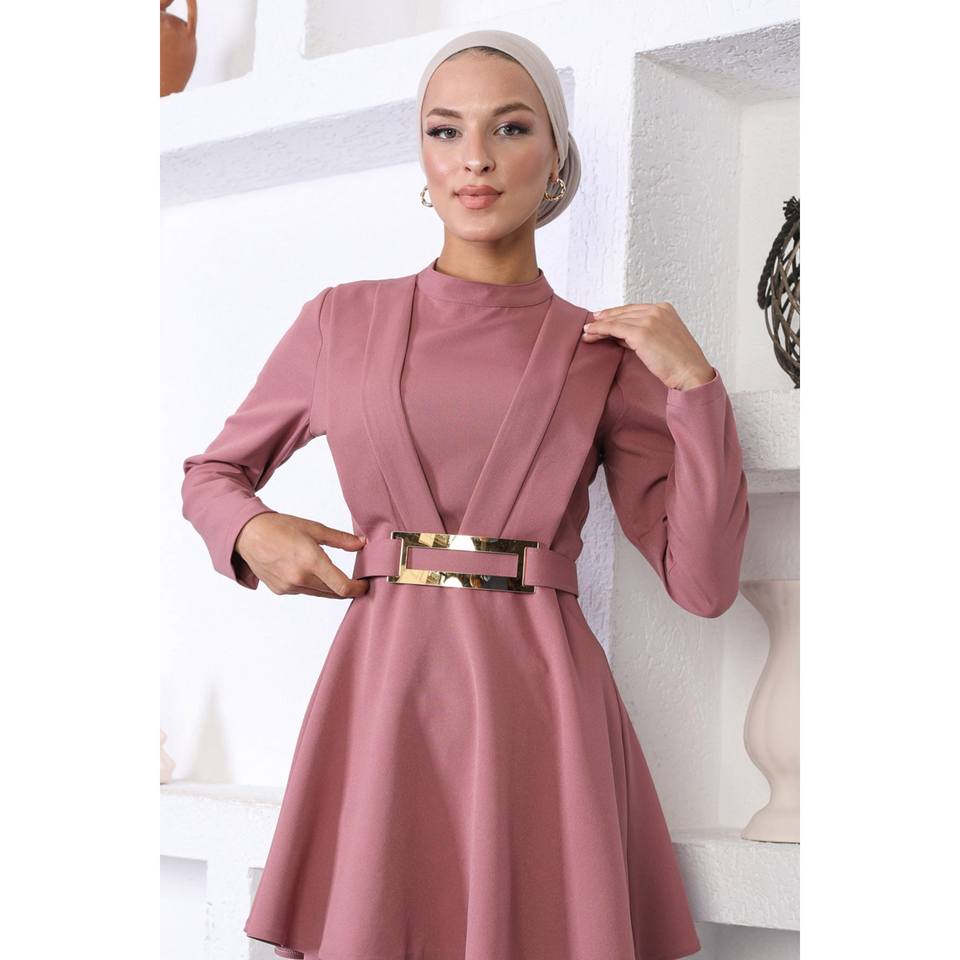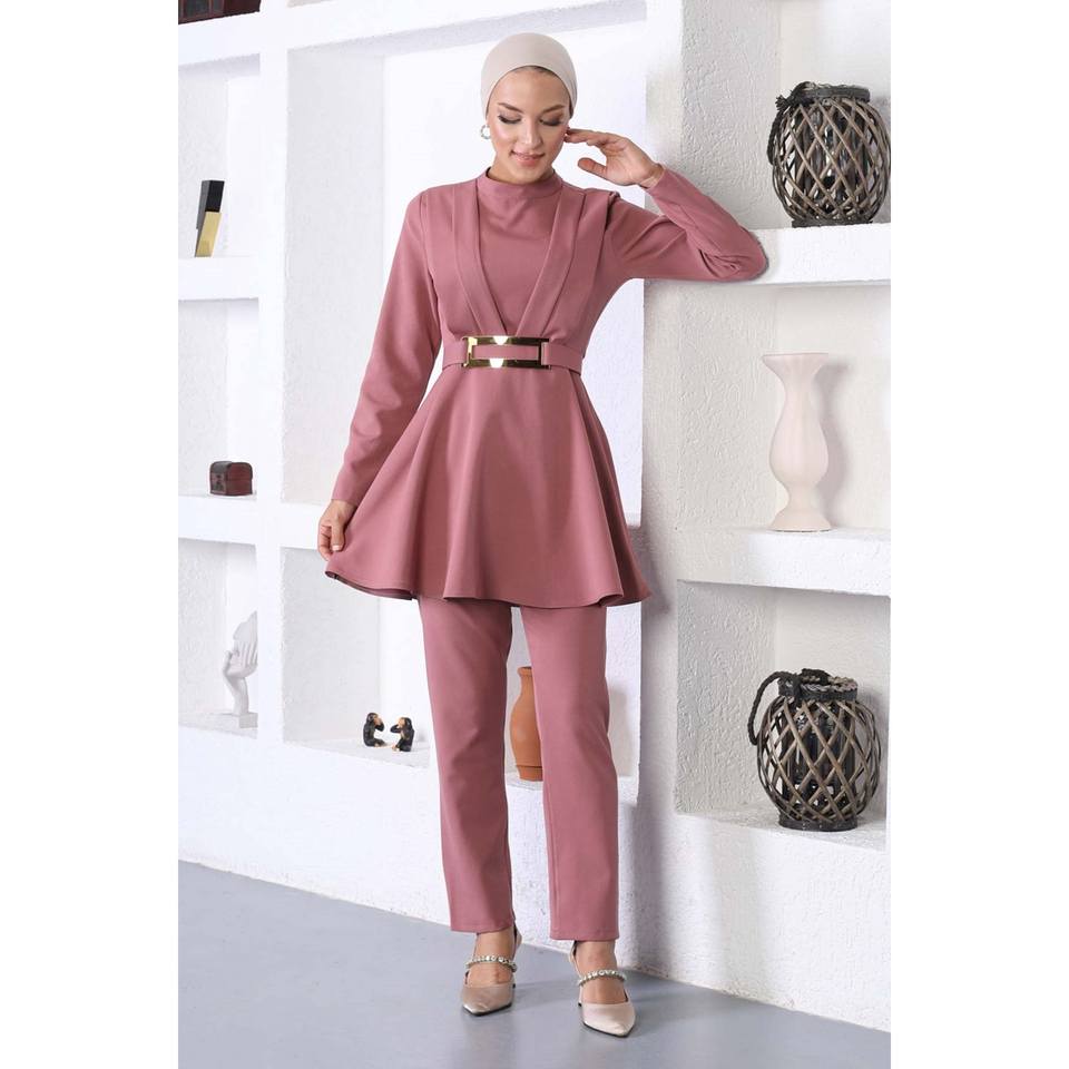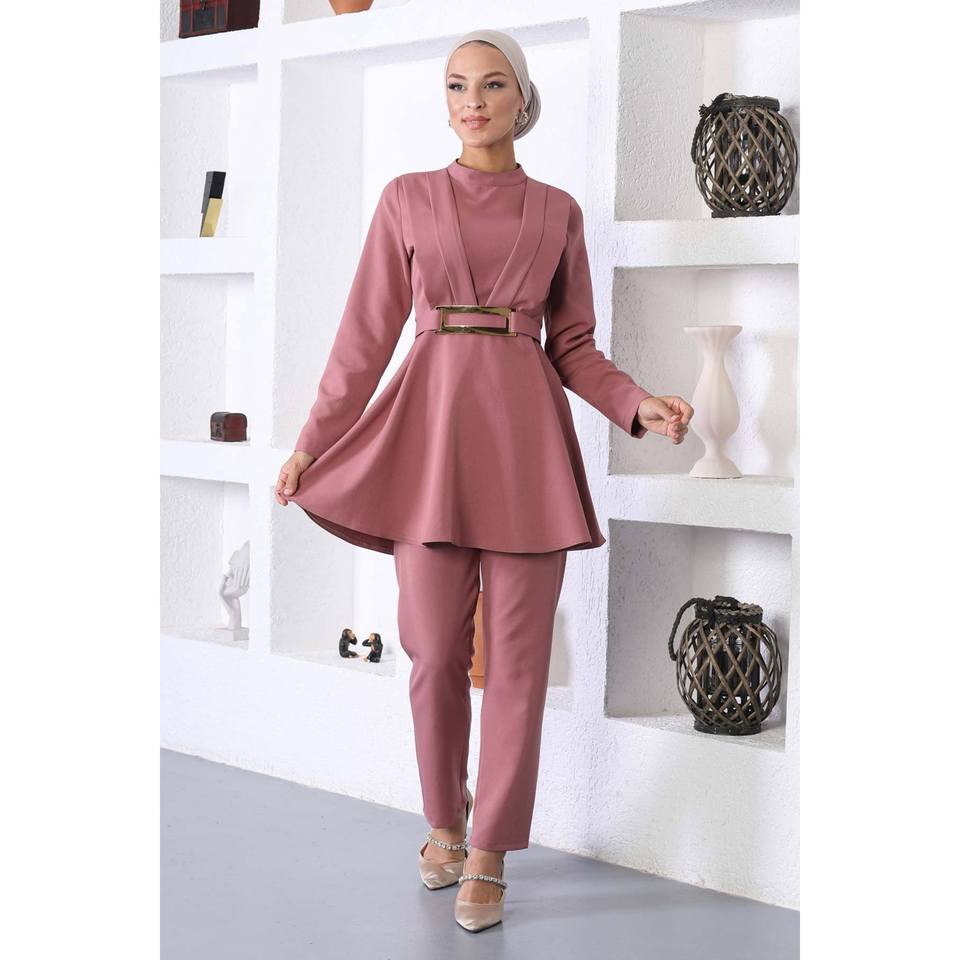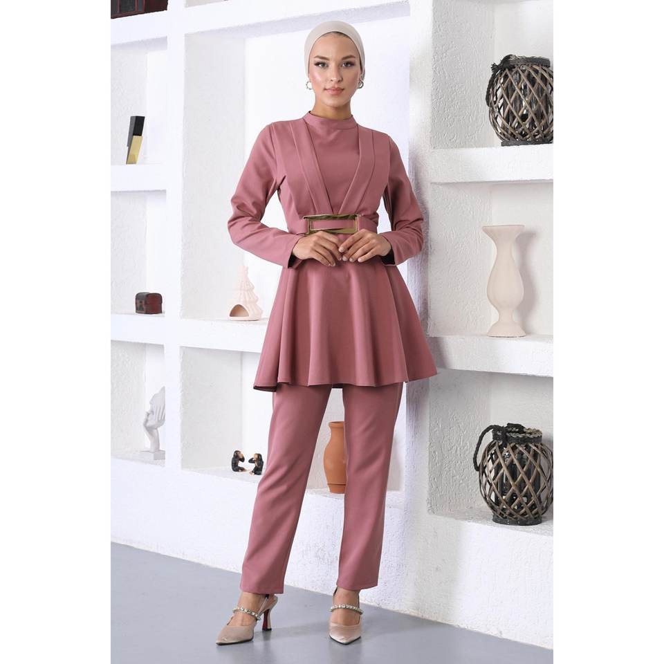 ชุดเซ็ตสองชิ้นลำลองสำหรับผู้หญิง กระโปรงยาวระดับกลางแต่งระบาย คอเสื้อแบบคอกลม สำหรับสุภาพสตรี ผลิตจากโพลีเอสเตอร์ 100%