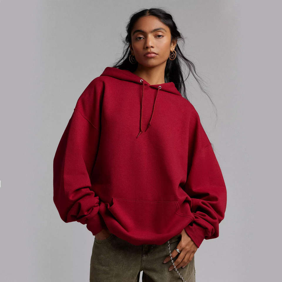 เสื้อฮู้ดแบบสวมหัวแขนยาวของผู้หญิง, เสื้อมีฮู้ดผ้าฝ้าย100% โอเวอร์ไซส์ปรับแต่งสีได้ระบายอากาศได้สำหรับผู้หญิง