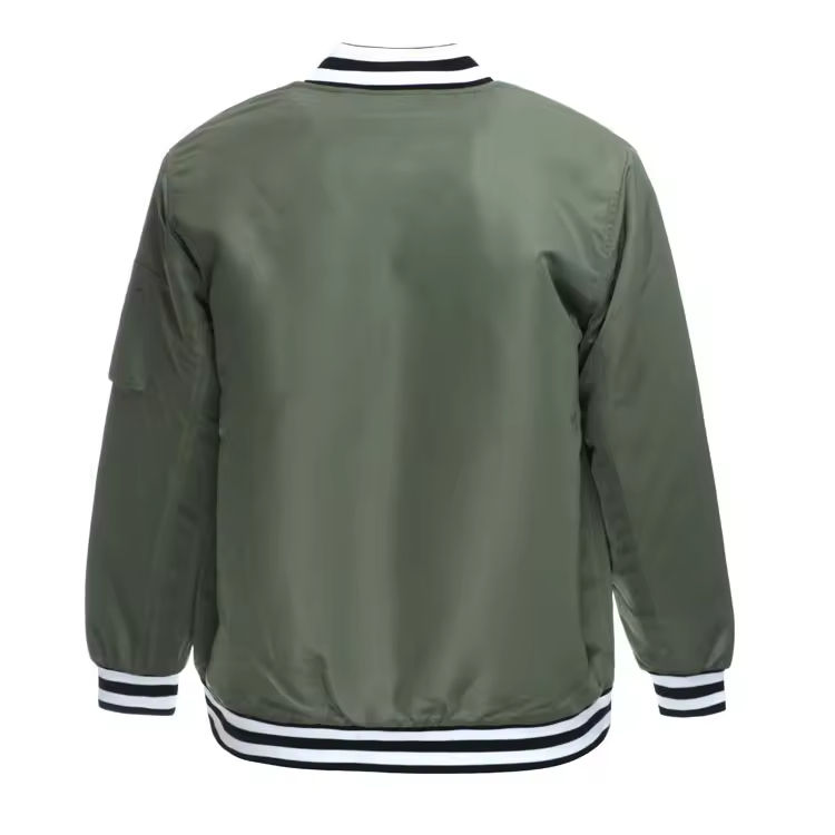 เสื้อแจ็คเก็ตบอมเบอร์แบบซิปสไตล์ลำลอง | เสื้อผ้าสตรีทแวร์ขายส่ง เสื้อคลุมกันลมกันน้ำ ผลิตจากผ้าไหมแกะ 100% เป็นมิตรกับสิ่งแวดล้อม แห้งเร็ว สำหรับฤดูหนาว