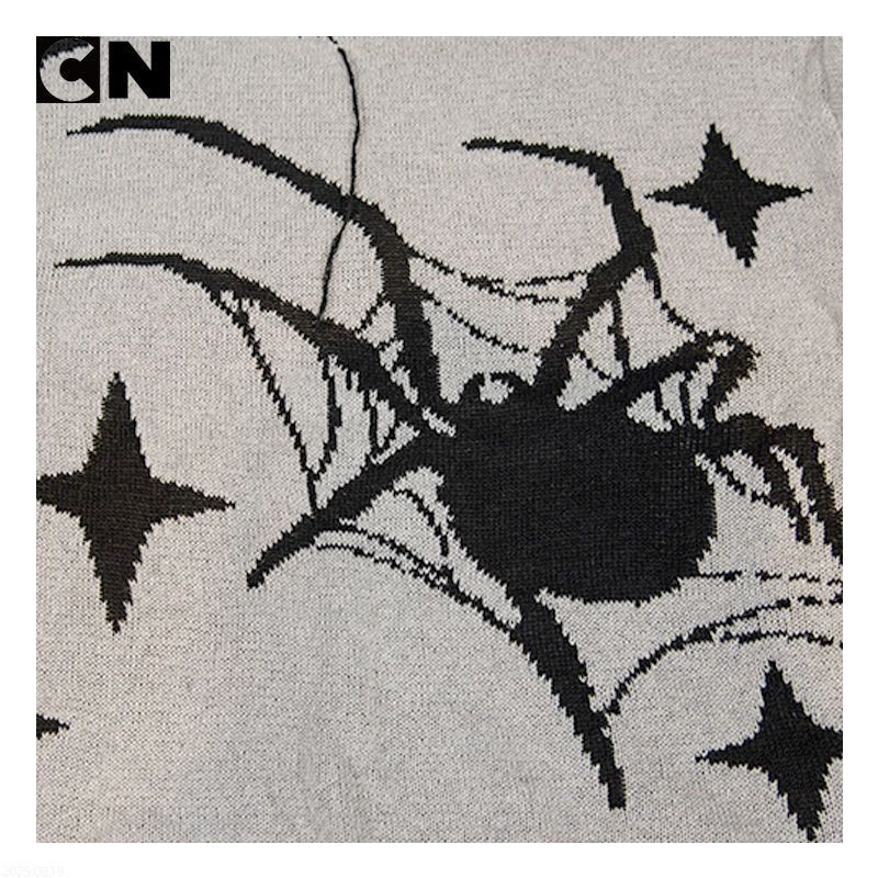 เสื้อสเวตเตอร์คอกลมกราฟิกลายแมงมุมสำหรับผู้ชาย