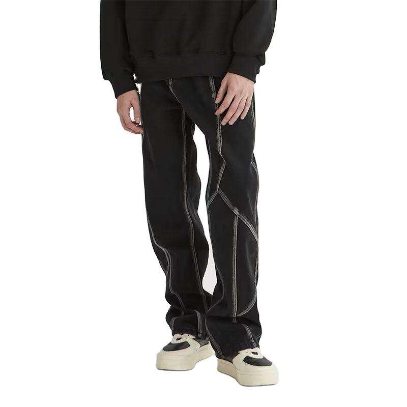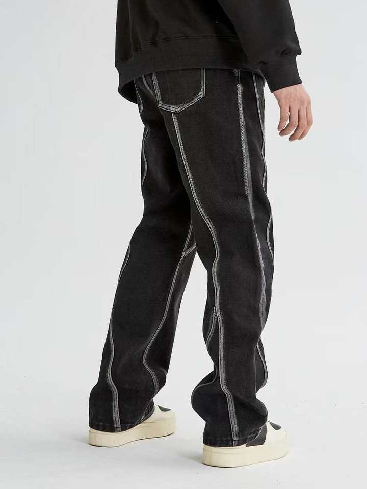 Casual straight leg men's pantswashed denim pants slim mid waist button skinny jeans distressed fashion wear versatile style
