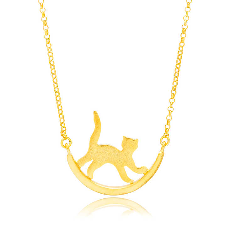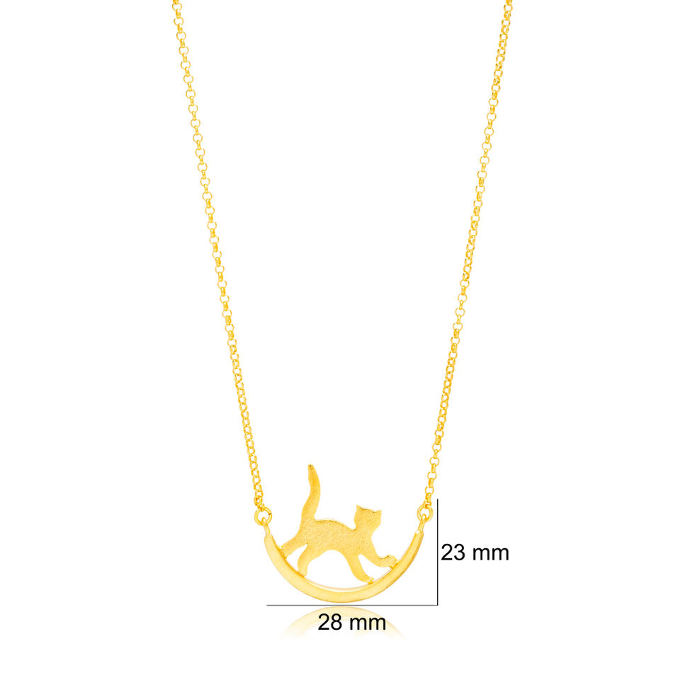 แมวออกแบบน่ารักเสน่ห์สร้อยคอจี้22พันทองชุบตุรกีแฮนด์เมดขายส่ง925เครื่องประดับเงินสเตอร์ลิง