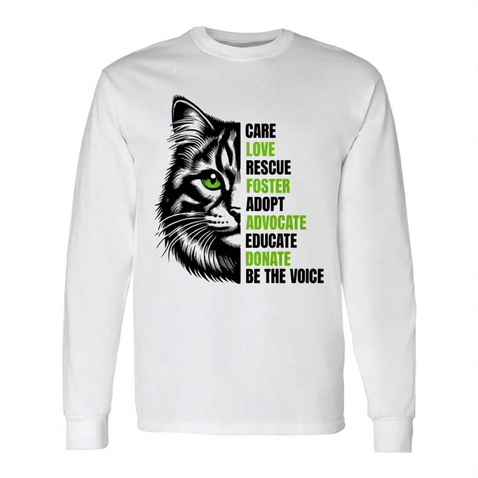 เสื้อยืดแขนยาวสำหรับคนรักแมว ดูแล รักษา ช่วยเหลือ ดูแล รับเลี้ยง สนับสนุน ให้ความรู้ บริจาค เป็นเสียงที่เหยียดหูเสียง