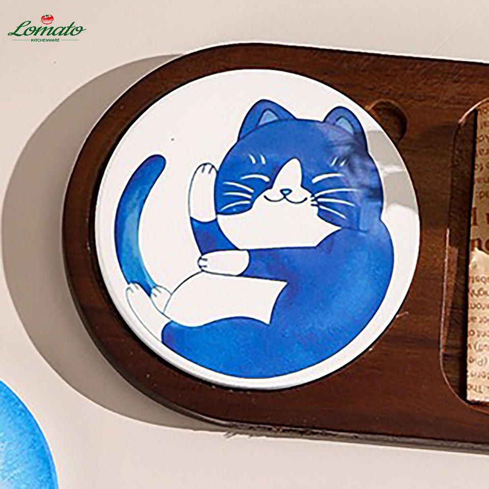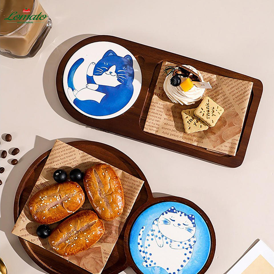 ถาดเสิร์ฟไม้กระถินณรงค์ลายแมว ทนทาน เป็นมิตรกับสิ่งแวดล้อม พร้อมชุดจานรองแก้ว ป้องกันความร้อน สำหรับร้านอาหารและโรงแรม