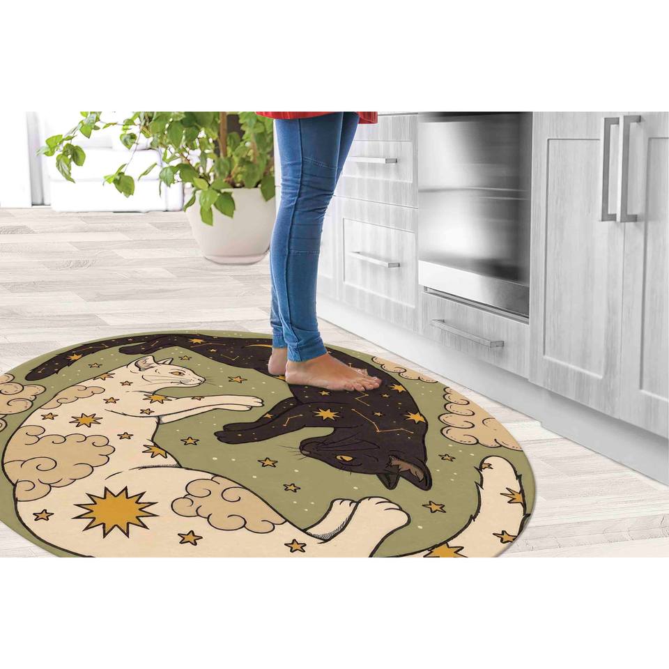 พรมลายแมว: พรมทรงกลมลายแมวสวรรค์ พรมพิมพ์ลายแมวสวรรค์ พร้อมพรมขนนุ่ม