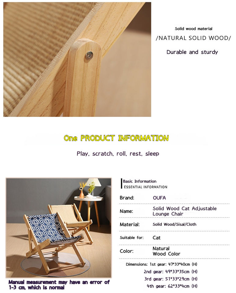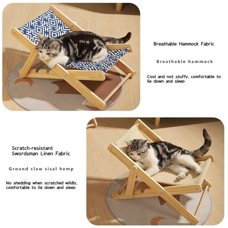 ที่ข่วนเล็บแมว เบาะนอนแมว ผ้าใบหุ้มใยไซซอล ปรับระดับได้ ทนทานต่อการข่วน ของเล่นแมว รูปทรงเก้าอี้ชายหาด ผลิตภัณฑ์สำหรับแมว