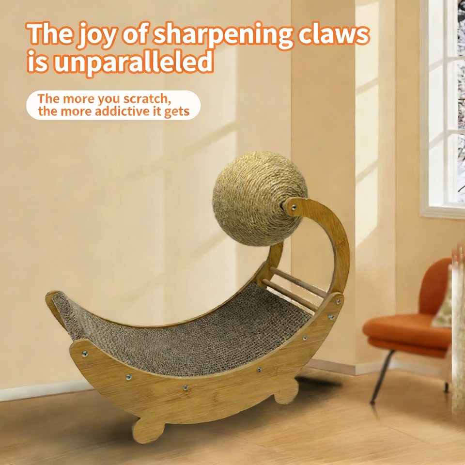 ที่ลับเล็บแมวรูปเรือพระจันทร์ ขนาด 49 ซม. ทำจากไม้ธรรมชาติและเส้นใยป่านศรนารายณ์ แข็งแรง ทนทาน ประกอบง่าย ปลอดภัย ของเล่นสำหรับแมว