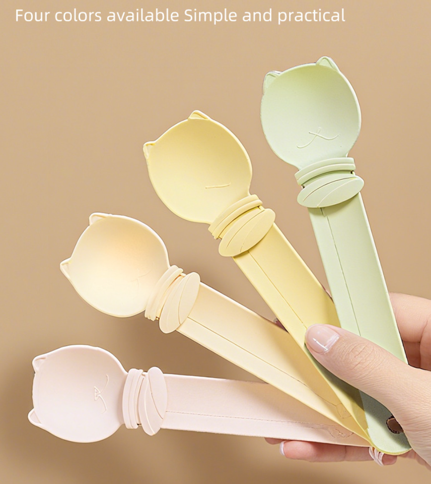 ช้อนป้อนขนมและของว่างสำหรับแมวแบบพับได้ รูปทรงสี่เหลี่ยมผืนผ้า ผลิตจากพลาสติกที่เป็นมิตรกับสิ่งแวดล้อม สำหรับใช้ภายในอาคาร