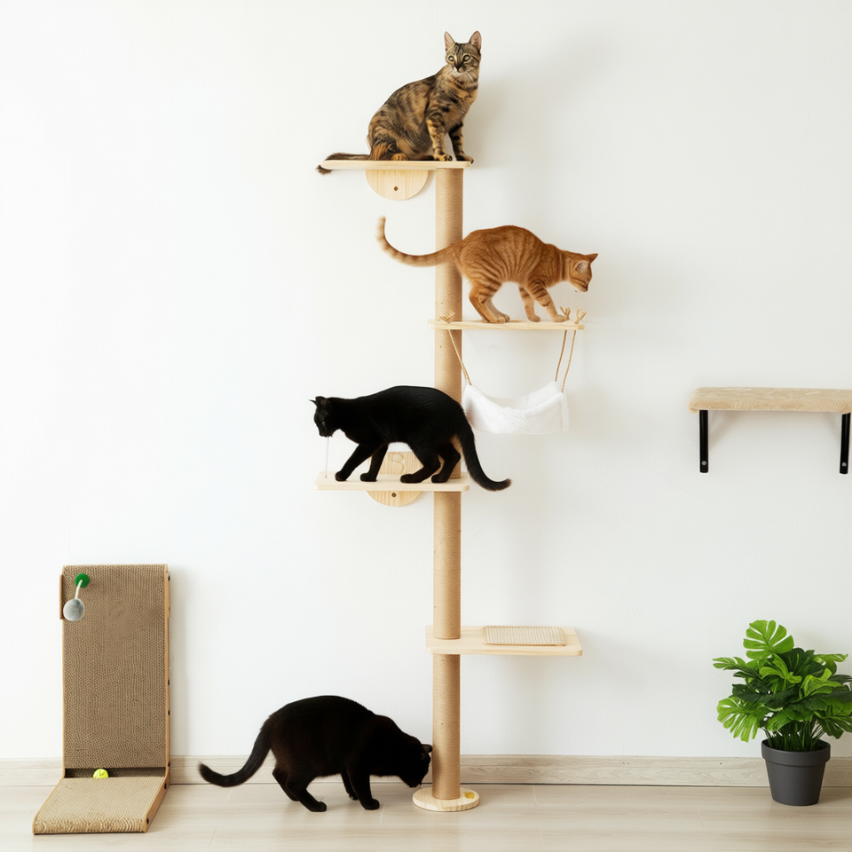 ต้นไม้แมวพร้อมเปลนอน 4 ชั้น วัสดุทำจากไซซอล สำหรับแมวขนาดเล็กถึงใหญ่ ดีไซน์เรียบง่าย