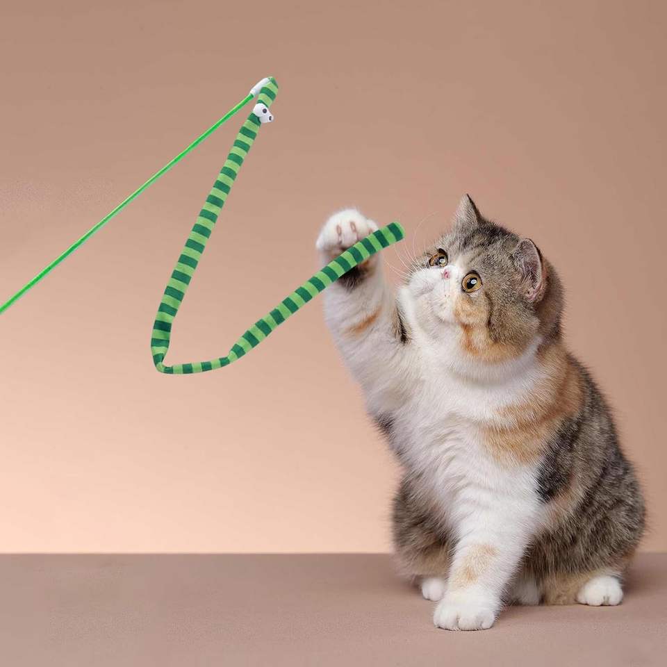 ของเล่นแมวแบบแท่งพร้อมสปริง ของเล่นแมวแบบอินเทอร์แอคทีฟสำหรับแมวในบ้าน ลูกแมว ของเล่นแท่งล่อแมว