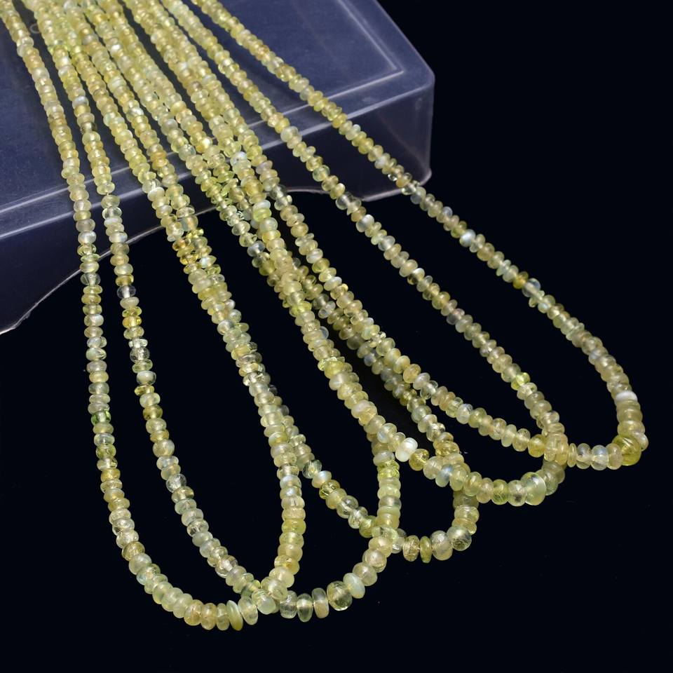 ลูกปัดคริสโซเบอรีลตาแมว 2.5 มม.-5 มม. ทรงรอนเดลล์เรียบ ลูกปัดพลอยตาแมวคุณภาพสูงจากธรรมชาติ สำหรับทำเครื่องประดับ