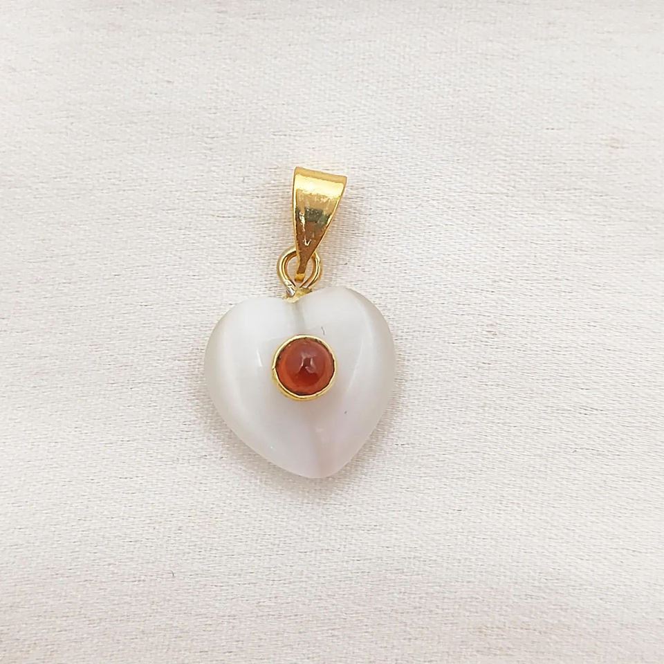 จี้รูปหัวใจแมวตาแมวทรงพอง 925 เงินแท้ ตัวเรือนแบบ Bail Setting ทำด้วยมือ จี้แมวตาแมวโมนาลิซ่า อัญมณีธรรมชาติ
