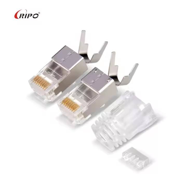 ขั้วต่อ RJ45แบบหุ้มฉนวน Cat6 8P8C ชุบทองสำหรับสายอีเธอร์เน็ต FTP STP ที่มีสลักเกลียว