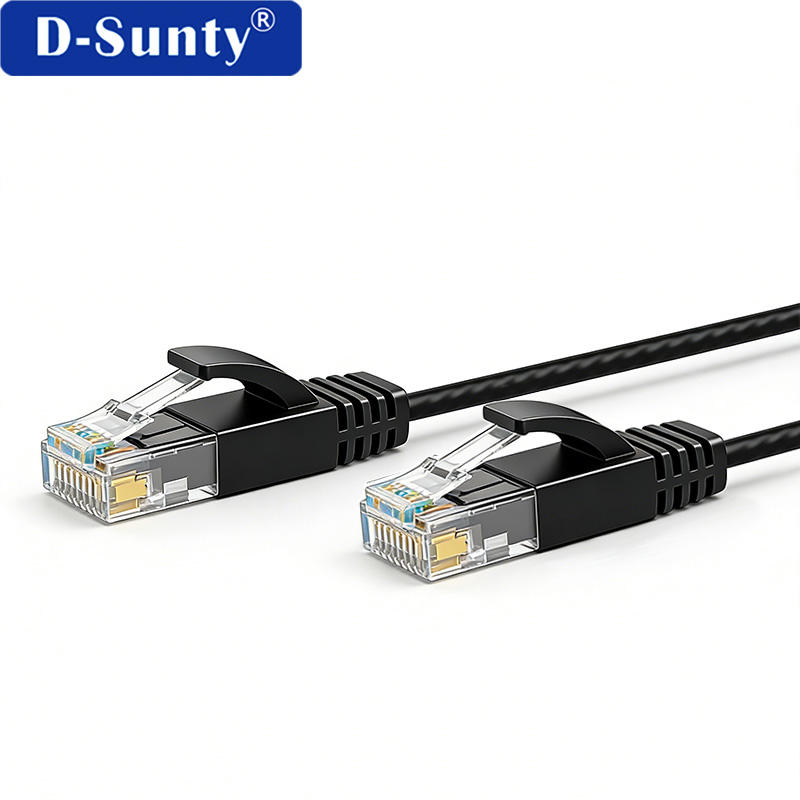 สายอีเธอร์เน็ต Cat6 Slim UTP แบบกลม ทองแดงแท้ 28AWG 26AWG 24AWG ไม่มีฉนวนป้องกัน ความเร็วสูง RJ45 สายแพทช์แลน 1 เมตร สำหรับตู้แร็คศูนย์ข้อมูล