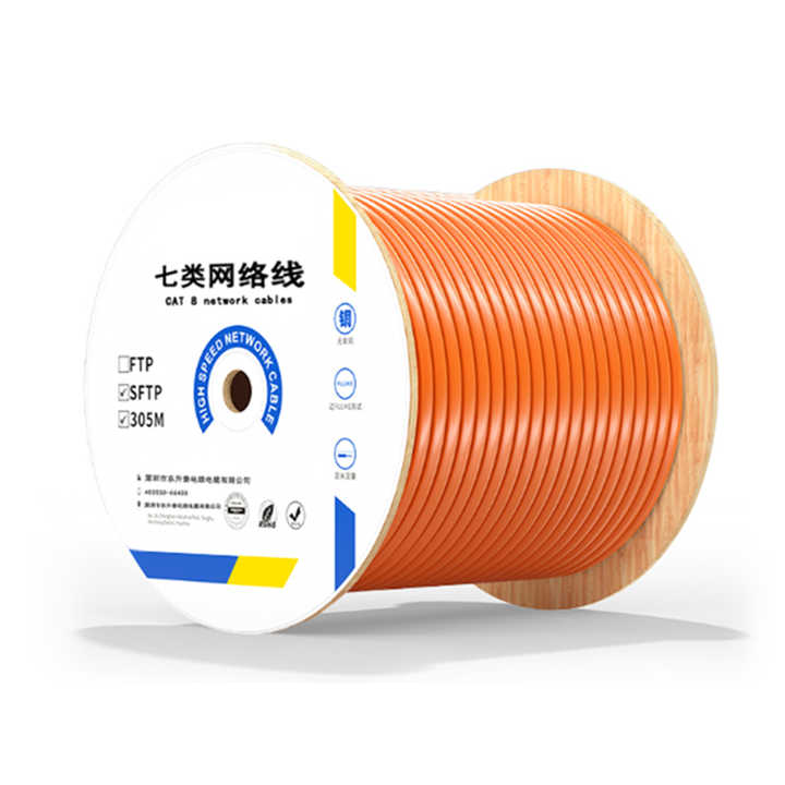 สายเคเบิลเครือข่ายอีเธอร์เน็ต Cat7 305M 1000FT ความยาว 100 เมตร ทองแดงเปลือย ตัวนำทองแดงแข็ง 24AWG 28AWG STP ROHS สายสื่อสาร