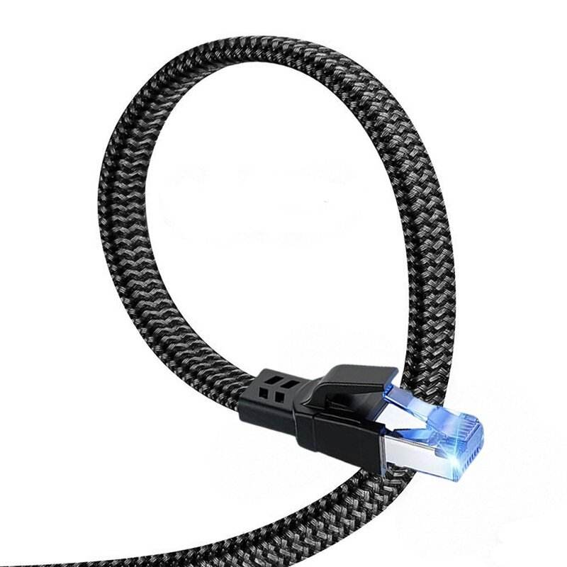 สายอีเธอร์เน็ต Cat8 แบบแบนถัก PVC ทองแดง 0.5 ม. 1 ม. 2 ม. 3 ม. 5 ม. 10 ม. 40Gbps SFTP สายแพทช์เน็ตเวิร์คแบบมีฉนวนป้องกัน