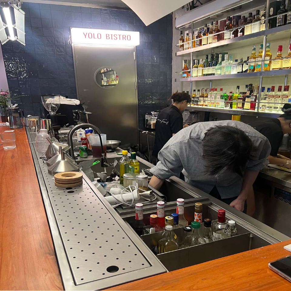สถานีผสมอาหารสแตนเลสสำหรับงานจัดเลี้ยง งานหนัก ขัดเงา พร้อมถังน้ำแข็งและเขียงสำหรับงานกลางแจ้ง