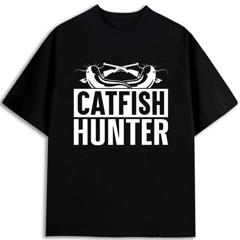 เสื้อยืด Catfish Hunter ผ้าฝ้าย 100% 180gsm เสื้อผ้าตกปลาสำหรับทุกเพศ พิมพ์ลายสกรีนด้านหน้า คอกลม ทรงปกติ ผลิตในสหรัฐอเมริกา