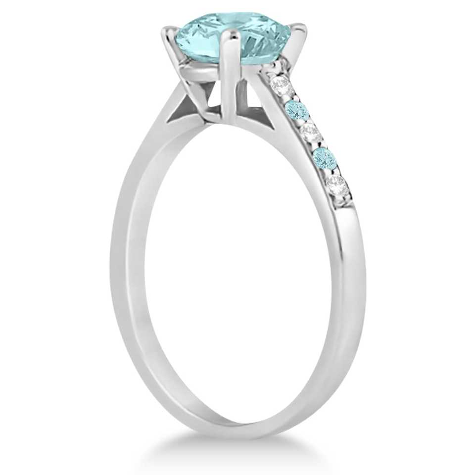 แหวนหมั้นเพชรและอะความารีน 1.20 กะรัต ทรง Cathedral ทำจากทองคำขาว 14k
