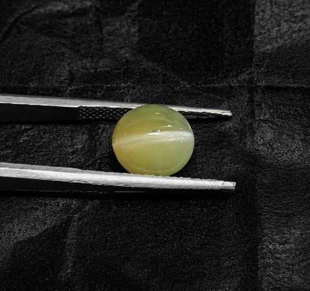 พลอยตาแมวทรงรีสีเขียวธรรมชาติ สำหรับทำแหวนหรือจี้ (ใช้ในโหราศาสตร์)