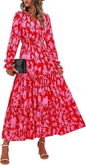 เดรสลำลองแขนยาวสำหรับผู้หญิงเดรสแม็กซี่แขนยาวลำลองงานแต่งงานงานแฮนด์เมดสำหรับผู้หญิงเดรสคอวีลายดอกไม้สไตล์โบฮีเมียน