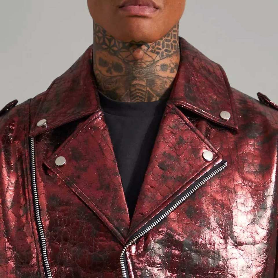 แจ็คเก็ตหนังผู้ชายสไตล์ไบค์เกอร์หลากสี รับทำโลโก้ตามสั่ง ออกแบบโดยดีไซเนอร์ โรงงานผลิตโดยตรง ราคาขายส่ง
