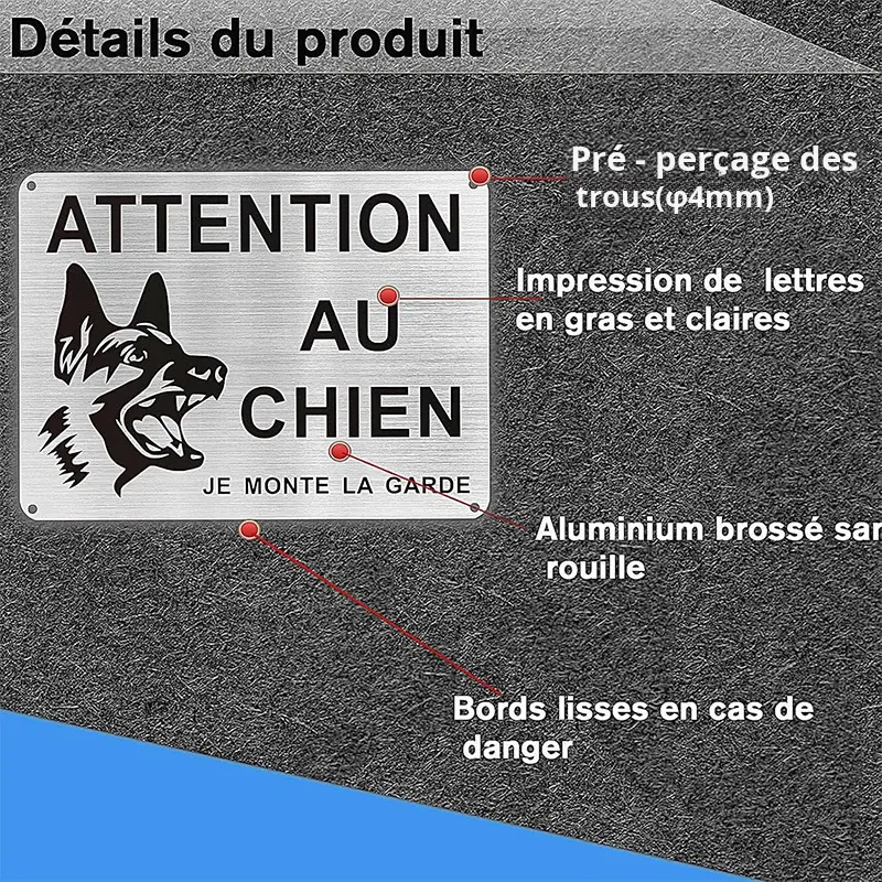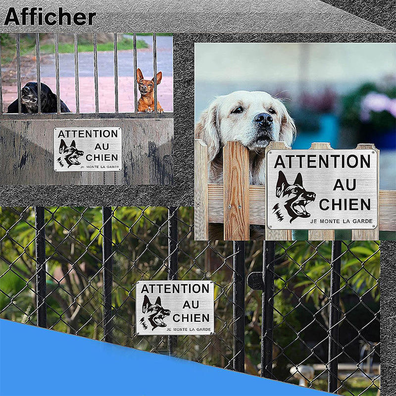 ป้ายเตือนสุนัขแบบฝรั่งเศสระวังสุนัขขนาด8x6นิ้วป้ายจราจรอลูมิเนียม
