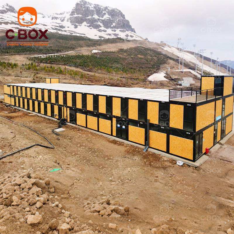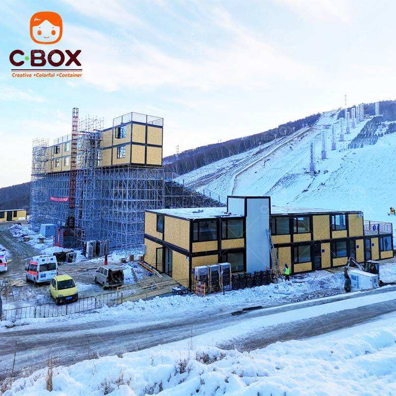 บ้านสำเร็จรูปแบบโมดูลาร์ Cbox สำหรับงานโอลิมปิกฤดูหนาว แบบแพ็คแบน ประกอบจากแผ่นแซนวิช ใช้เป็นห้องพักโรงแรม บาร์ สำนักงาน