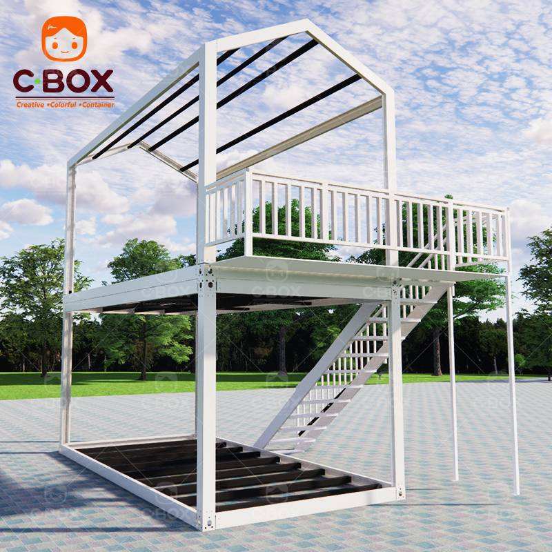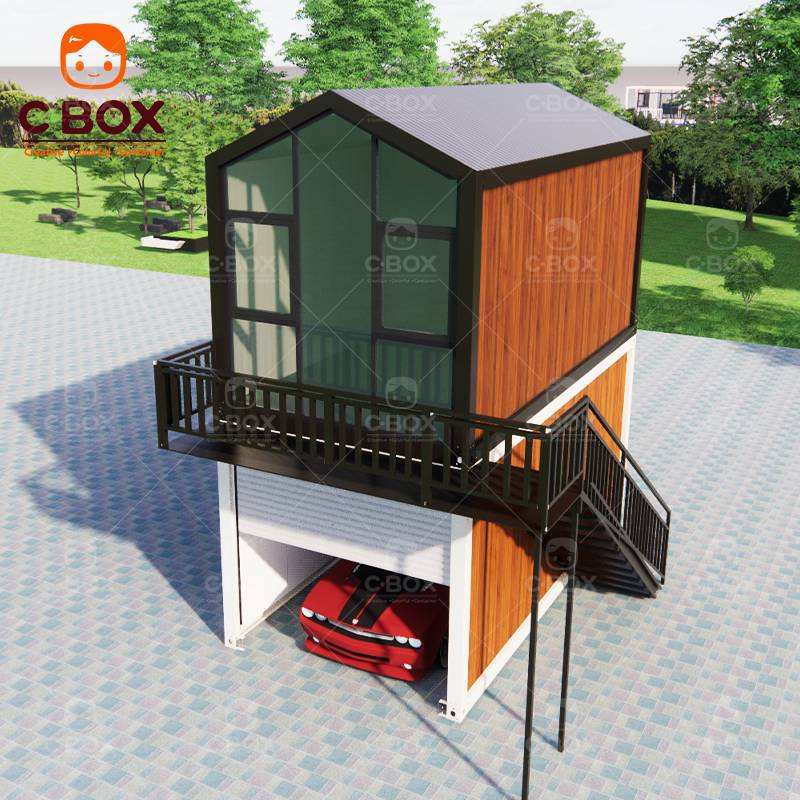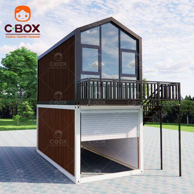 บ้านสำเร็จรูป Cbox แบบโมดูลาร์หรูหรา 2 ชั้น หลังคาทรงจั่ว ใช้เป็นโรงแรมแคปซูล สำนักงาน วิลล่า รีสอร์ท โรงจอดรถ บ้านคอนเทนเนอร์แบบถอดประกอบได้
