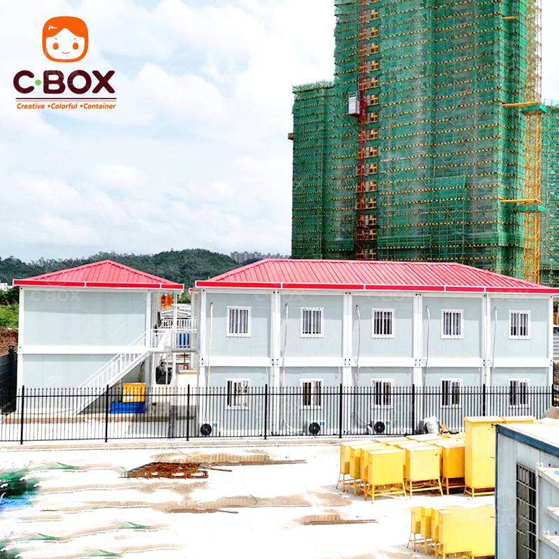 บ้านสำเร็จรูป Cbox ขนาด 20 ฟุต แบบถอดประกอบได้ ทนไฟ อาคารเคลื่อนที่ 2 ชั้น สำหรับพักคนงาน สำนักงาน หรือห้องแยกโรค พร้อมหลังคาสีแดง