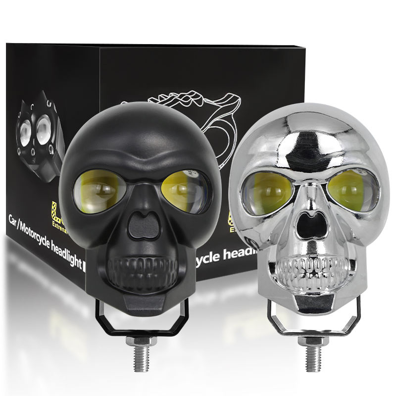 Cecor โคมไฟลำแสงคู่ไฟ LED สำหรับรถยนต์สีดำสีเงินสีขาวสีเหลืองหัวกะโหลกอุปกรณ์เสริมรถจักรยานยนต์