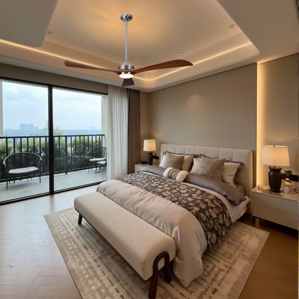 พัดลมติดเพดานสไตล์ยุโรป, พัดลมติดเพดานไฟ LED ใบพัดไม้3นิ้ว