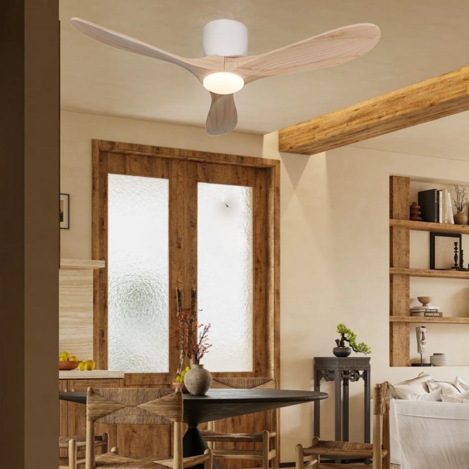 พัดลมเพดานพร้อมใบพัดไม้จริง3ใบพัดปรับความเร็วได้6ระดับรีโมทคอนโทรลเหมาะสำหรับพื้นที่รับประทานอาหารและห้องนั่งเล่น