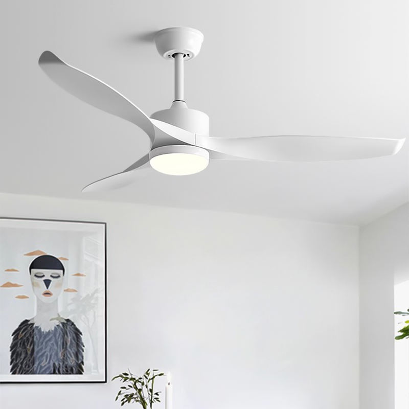 พัดลมเพดานพร้อมใบพัดพัดลม ABS ไฟบ้านควบคุมระยะไกลห้องนั่งเล่นห้องรับประทานอาหารกลางแจ้งมอเตอร์ DC แบบย้อนกลับได้
