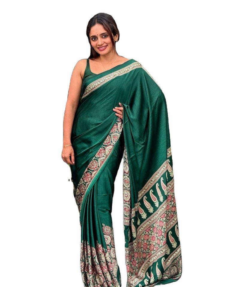 เฉลิมฉลองวัฒนธรรมของคุณด้วยผ้าซิ่นจอร์เจตต์แบบดั้งเดิม ตกแต่งขอบด้วยลายปักซารี ลายเพสลีย์ สำหรับผู้หญิง หลากสี เหมาะสำหรับงานปาร์ตี้