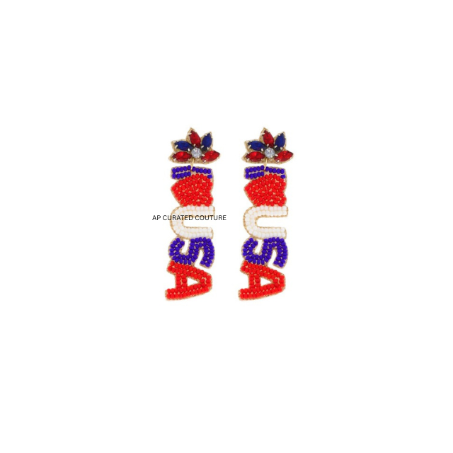 เฉลิมฉลองวันที่ 4 กรกฎาคมด้วยต่างหูประดับลูกปัดสีแดง ขาว และน้ำเงินทำมือ ที่ได้แรงบันดาลใจจากสไตล์อเมริกันคลาสสิก