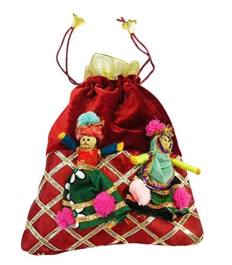 เฉลิมฉลองความเป็นเอกลักษณ์ของงานฝีมืออินเดีย กระเป๋าผ้ากำมะหยี่สีแดงสุดประณีต งานฝีมือแบบดั้งเดิม หุ่นเชิดราชสถานที่สวยงาม