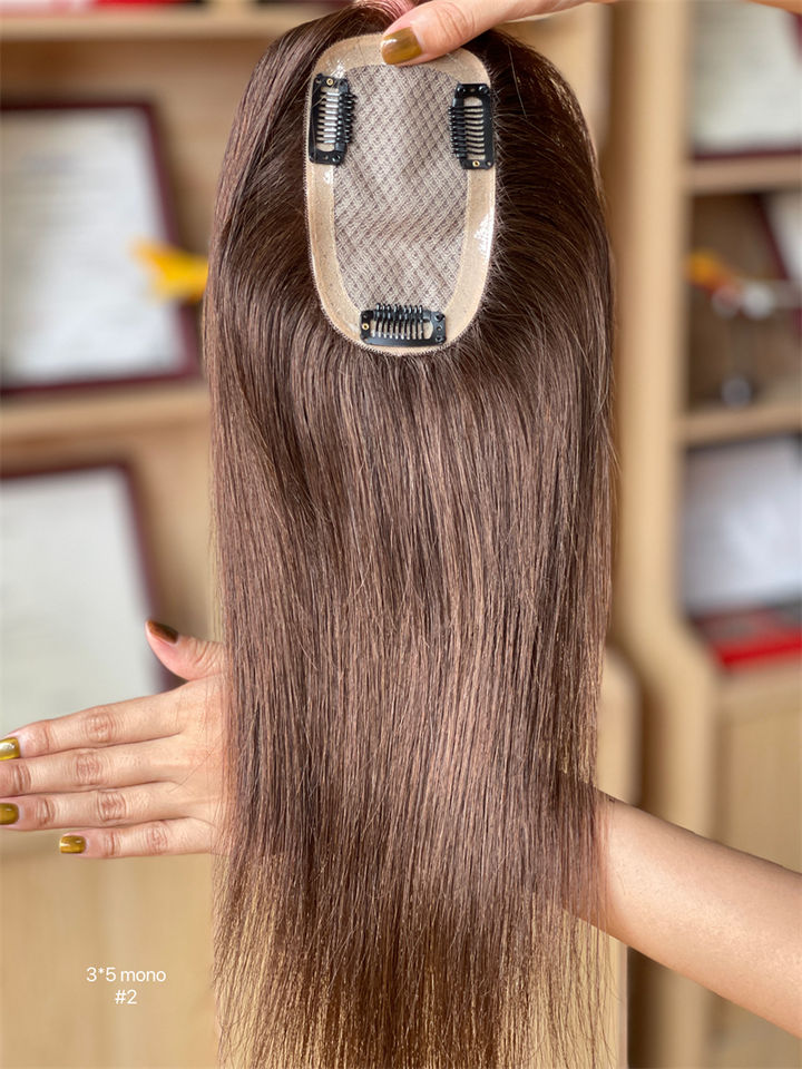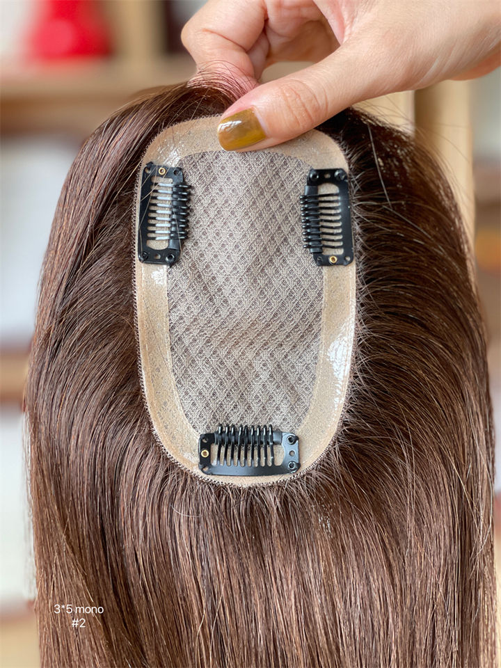 เซเลบริตี้ แซม สไตล์ส์ ผมแท้ยุโรป 100% เรมี่ แบบดิบ ท็อปเปอร์โมโน 3*5 # 2 สีน้ำตาลเข้ม 16 นิ้ว บอดี้เวฟ/ตรง 70-220 กรัม SHY