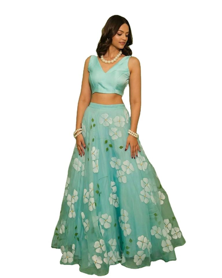 Celebrity Inspired Lightweight Viscose Lahenga Choli Flower Printed Bright Color Party Net Dress for Women Wholesale Shopping