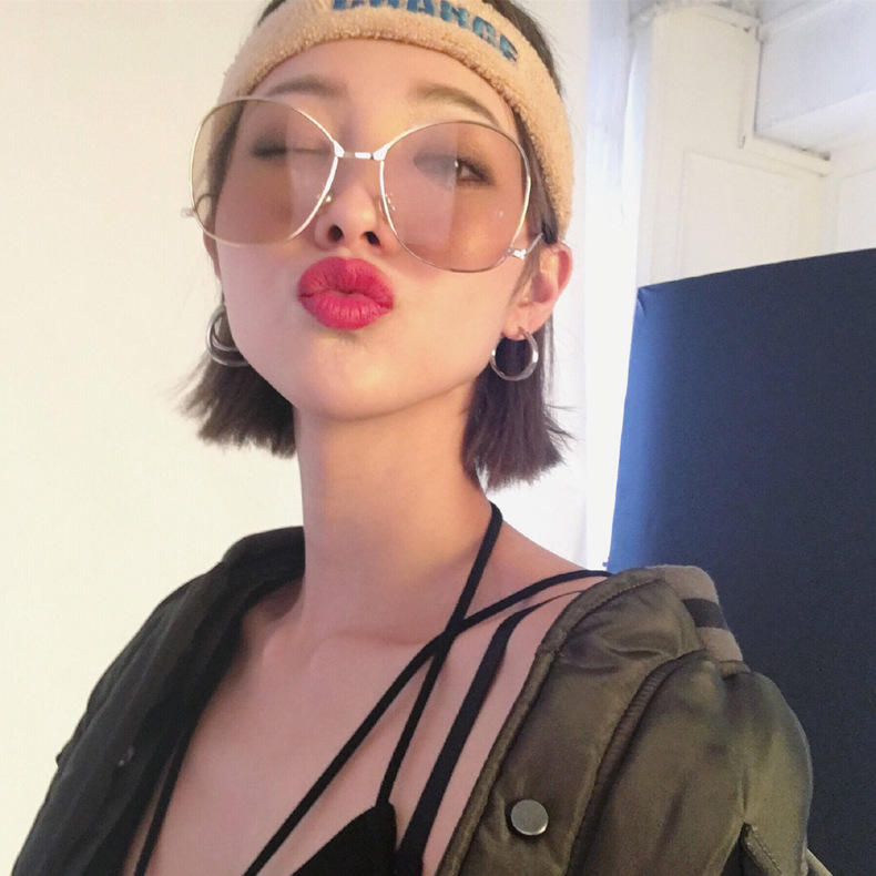 แว่นกันแดดผู้หญิงสไตล์คนดังกรอบโลหะสีทองป้องกันรังสียูวี 400 ดีไซน์ทรงกลมไม่สม่ำเสมอประเภท 3 แว่นกันแดด F2-6203