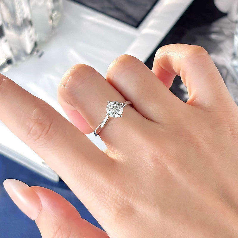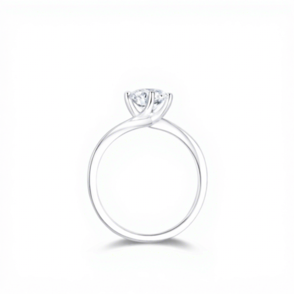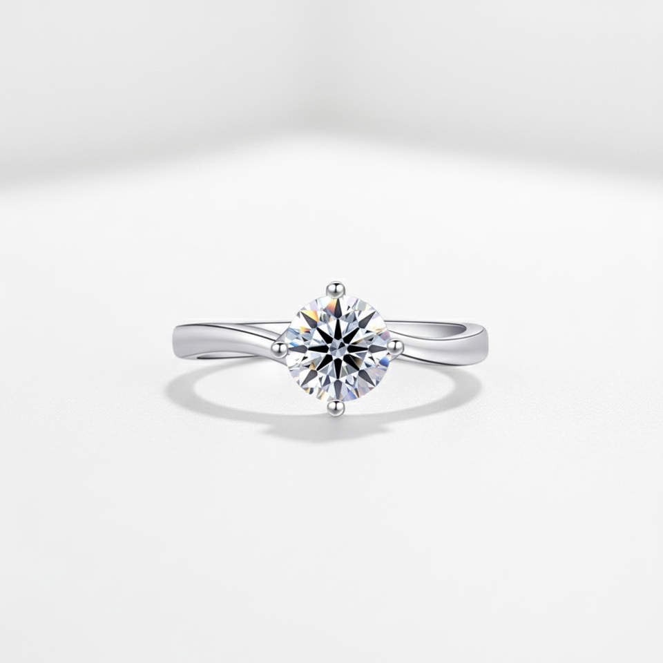 แหวนเพชรเม็ดเดี่ยวที่ปลูกในห้องปฏิบัติการของ Celeste Halo พร้อมด้วยดอกไม้บานและลูเมเรสสีเงินสำหรับผู้หญิง