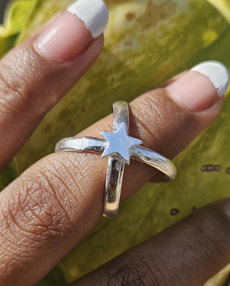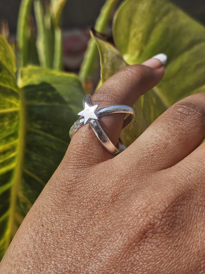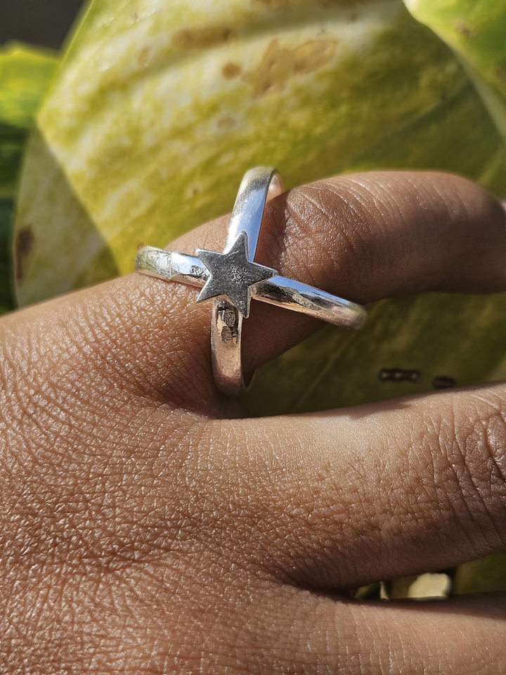 แหวนรูปดาวทำด้วยมือสีเงิน925ท้องฟ้าแหวนวงแบบเรียบง่ายแหวนแบบเปิดสำหรับชุดปาร์ตี้ของขวัญเครื่องประดับราคาโรงงาน