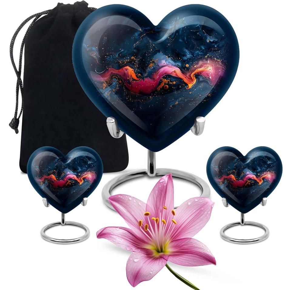 โกศทรงหัวใจคอมโบ3ชิ้น (โกศ10นิ้วและชุดโกศสำหรับเก็บขี้เถ้าของสัตว์เลี้ยง2ชิ้น)