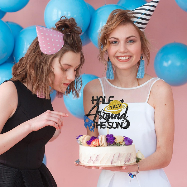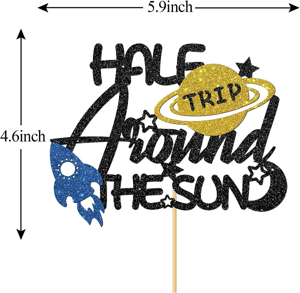 เค้กฉลองท้องฟ้าประดับยอดตกแต่งในธีมประกายสำหรับทริปครึ่งวันของคุณรอบดวงอาทิตย์งานวันเกิดครึ่งปี