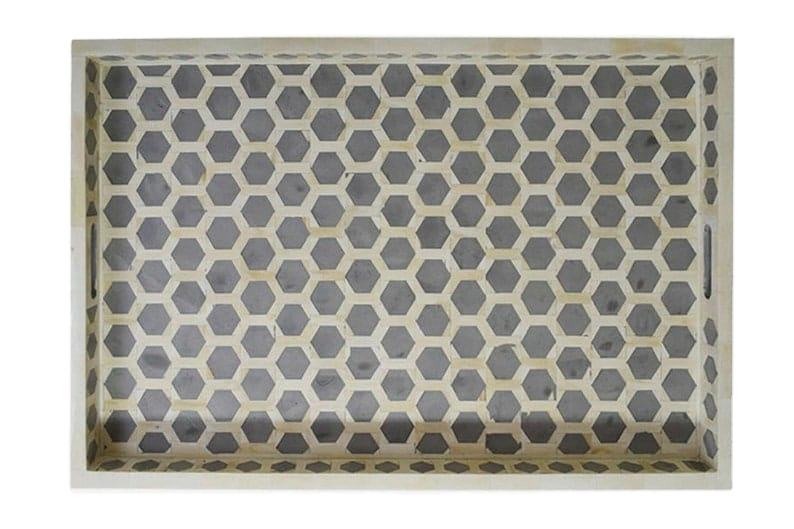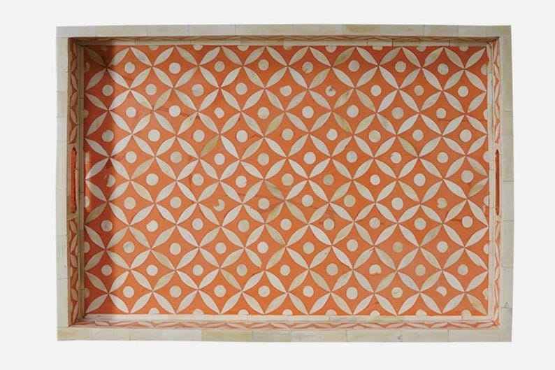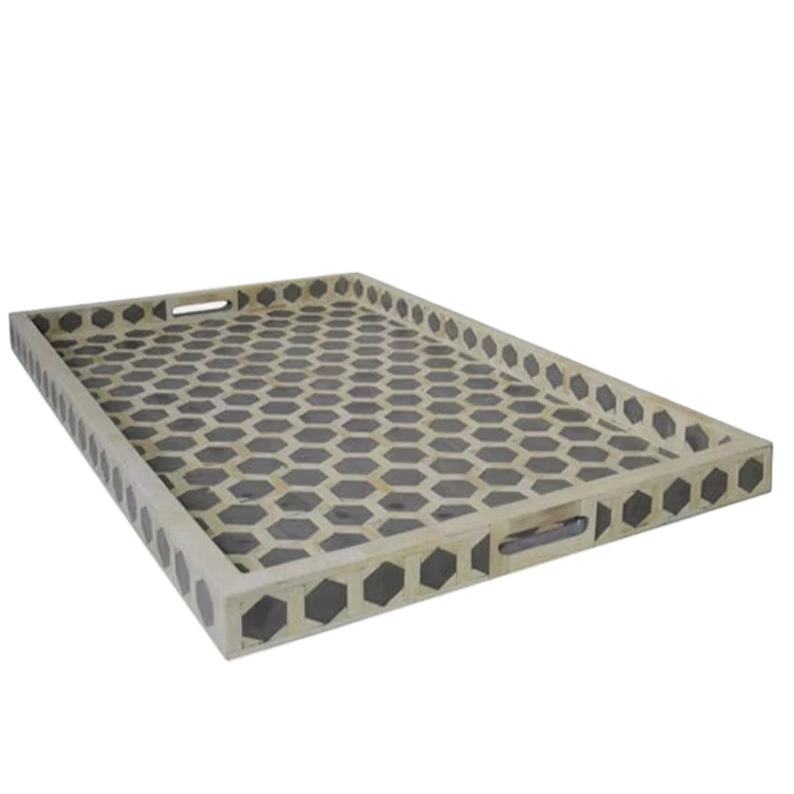 ถาดเสิร์ฟฝังมุกและกระดูกทำด้วยมือมีประกายแวววาวตกแต่งและหรูหราถาดสำหรับบ้านและห้องครัว