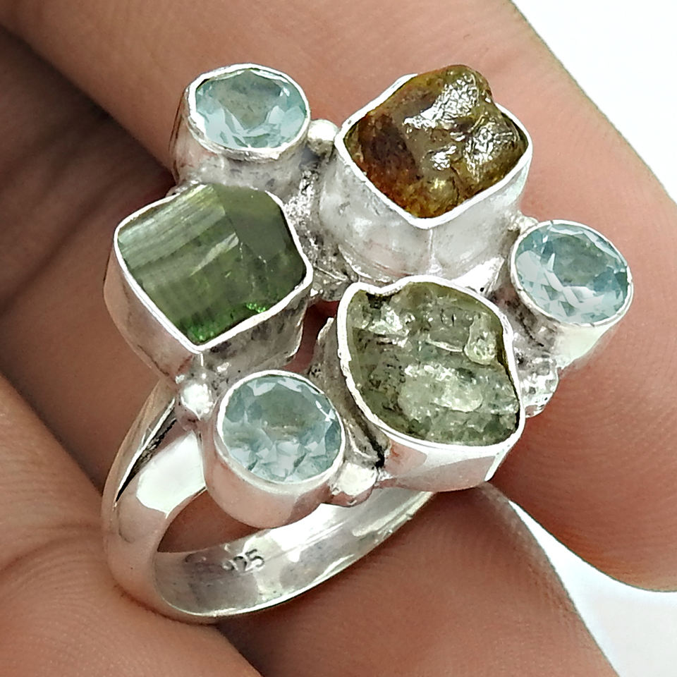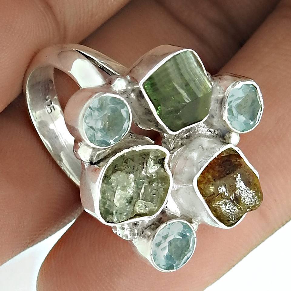 แหวนพลอยบุษราคัมสีฟ้าแบบดิบของท้องฟ้า925เครื่องประดับทำด้วยมือเงินแท้ขายส่งเป็นจำนวนมาก