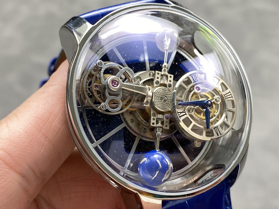 นาฬิกาหนังผู้ชายสไตล์ศิลปะลายท้องฟ้าหรูหราทำจากกระจกคริสตัลสำหรับนักธุรกิจชายปรับเวลาได้