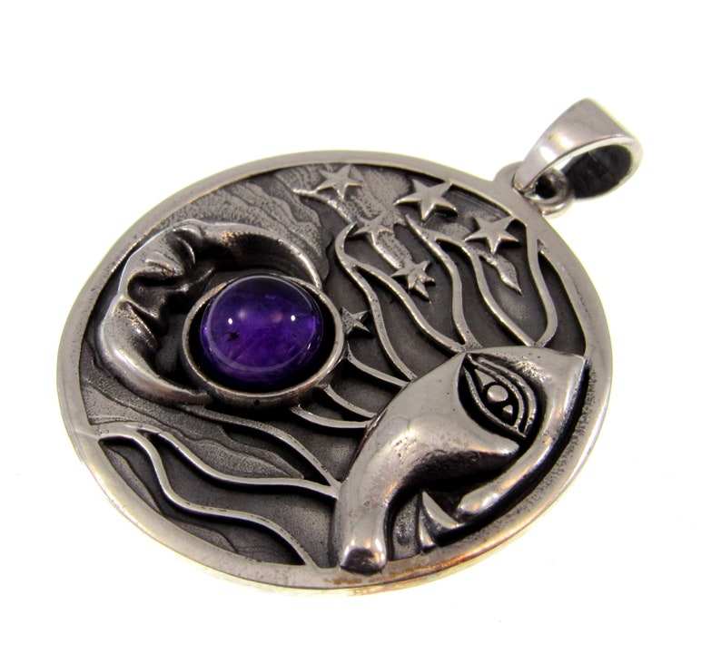 จี้รูปดาวพระจันทร์บนท้องฟ้าสีเงินสเตอลิง925ทึบพร้อมพลอยแท้สีทองและโรเดียมชุบตัวเรือนสำหรับผู้หญิง